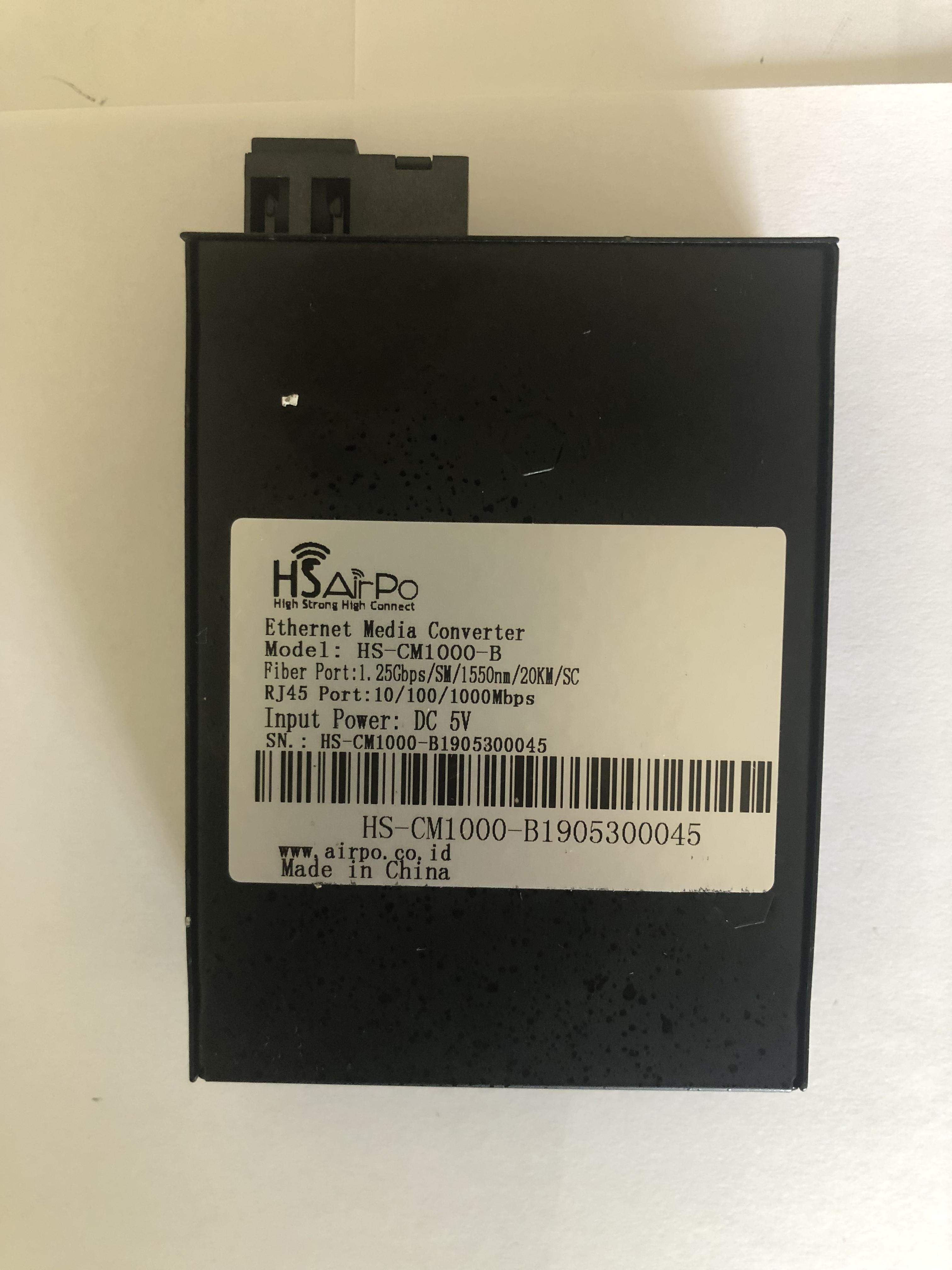 Fiber port:1.25Gps/SM/1310nm/1550nm/20KM/SC